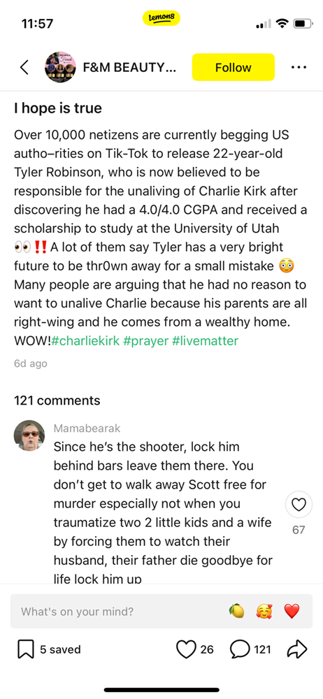 Nobody really wants Charlie Kirk’s murderer to go free. Don’t believe the trolls. Don’t be fooled by propaganda. See it for what it is: manipulation.