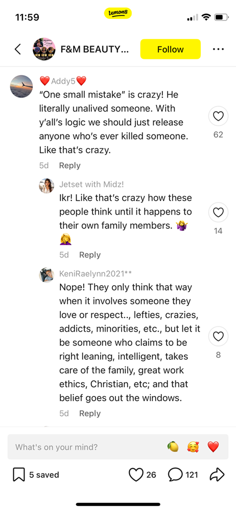 I have engaged with my fair share of trolls and bots on social platforms, including Lemon8, and have even tried to reason with them. After doing so on a slew of posts, it became clear that I was seeing the same people making the same fraudulent claims and incendiary comments on most every post; on Lemon8, blocking a user doesn’t hide their comments from third-party posts.
